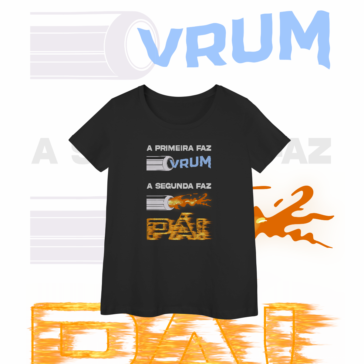 Esta camiseta é o seu manual de instruções para os leigos. É a expressão sonora que separa os entusiastas dos meros mortais. O "VRUM", eles até entendem. É o "PÁ" que frita o cérebro deles.