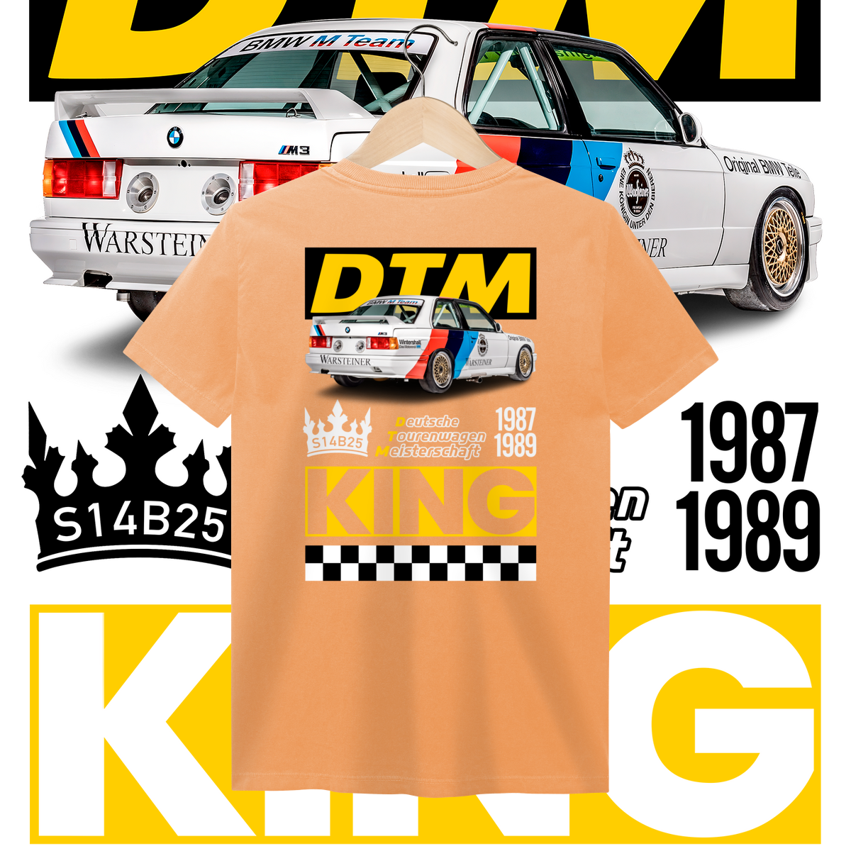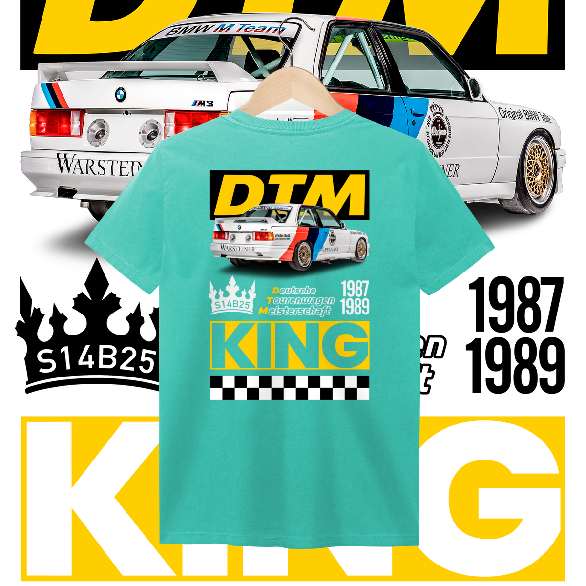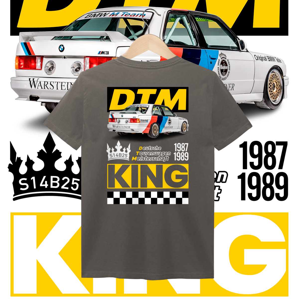 Na frente, o ícone que começou tudo. Nas costas, o salão do trono: o carro diante do seu emblema de conquista, a DTM, coroado como Rei indiscutível da sua era.