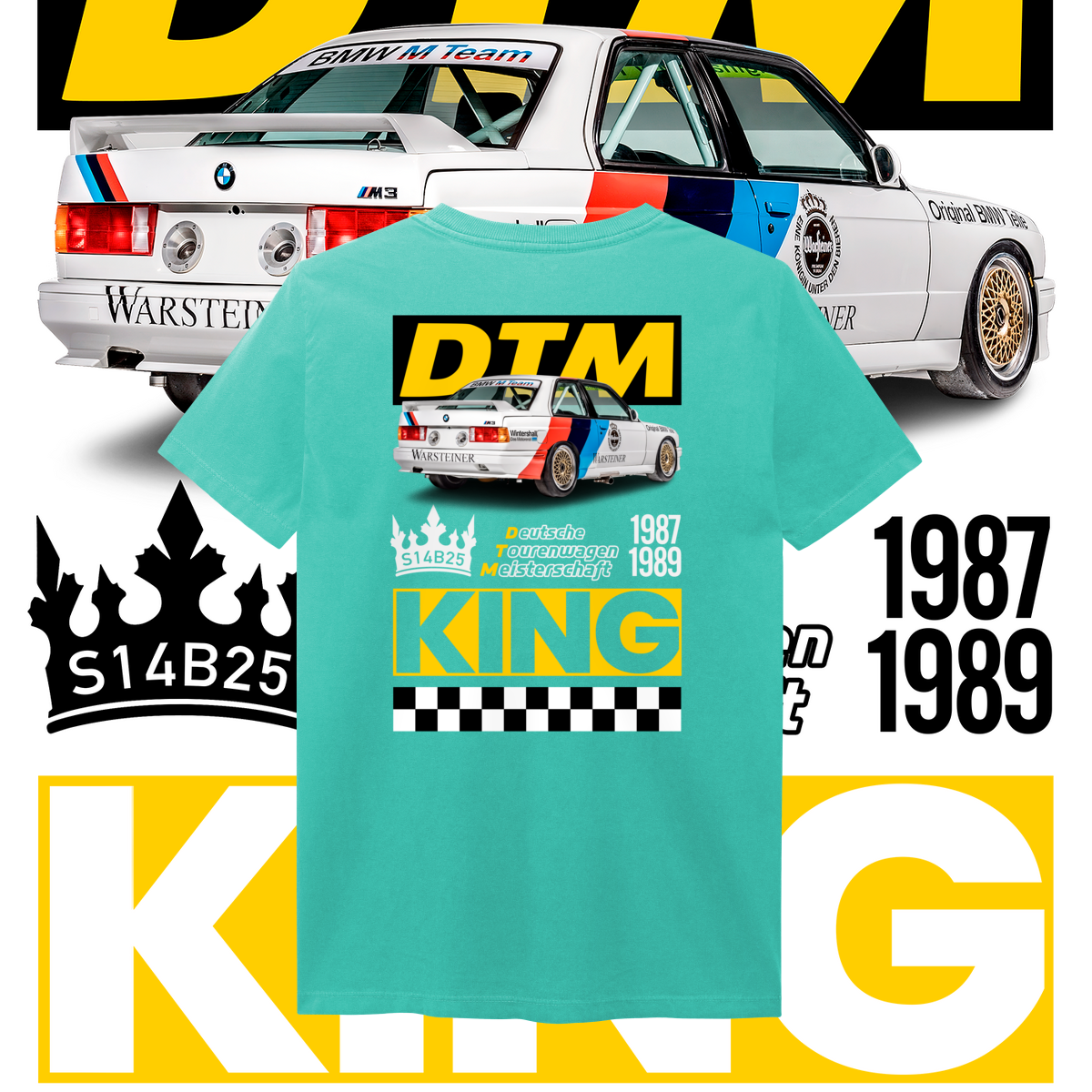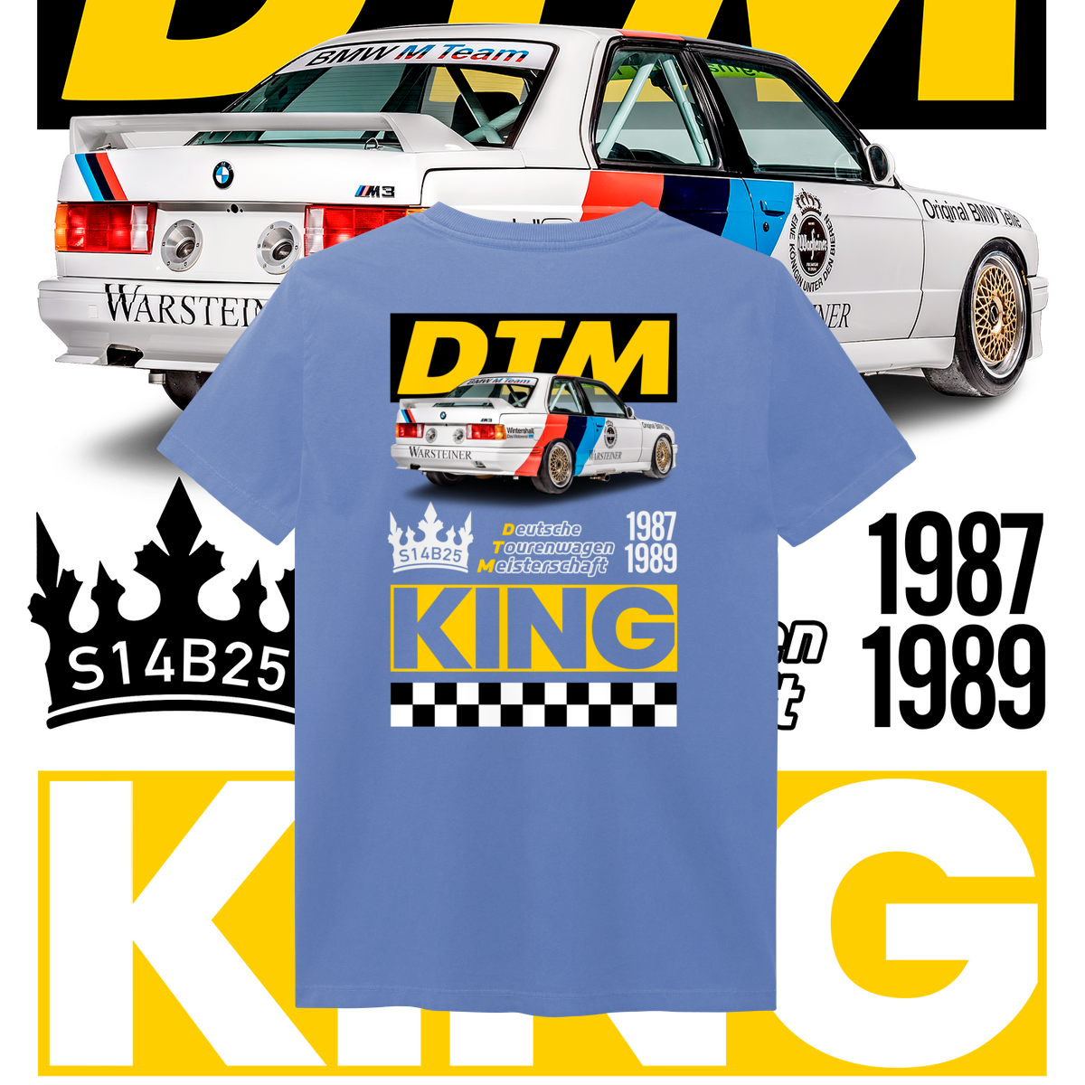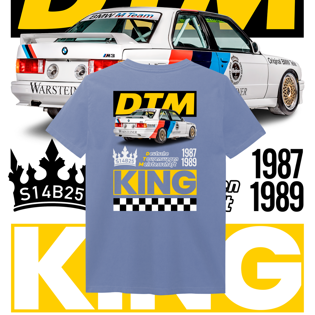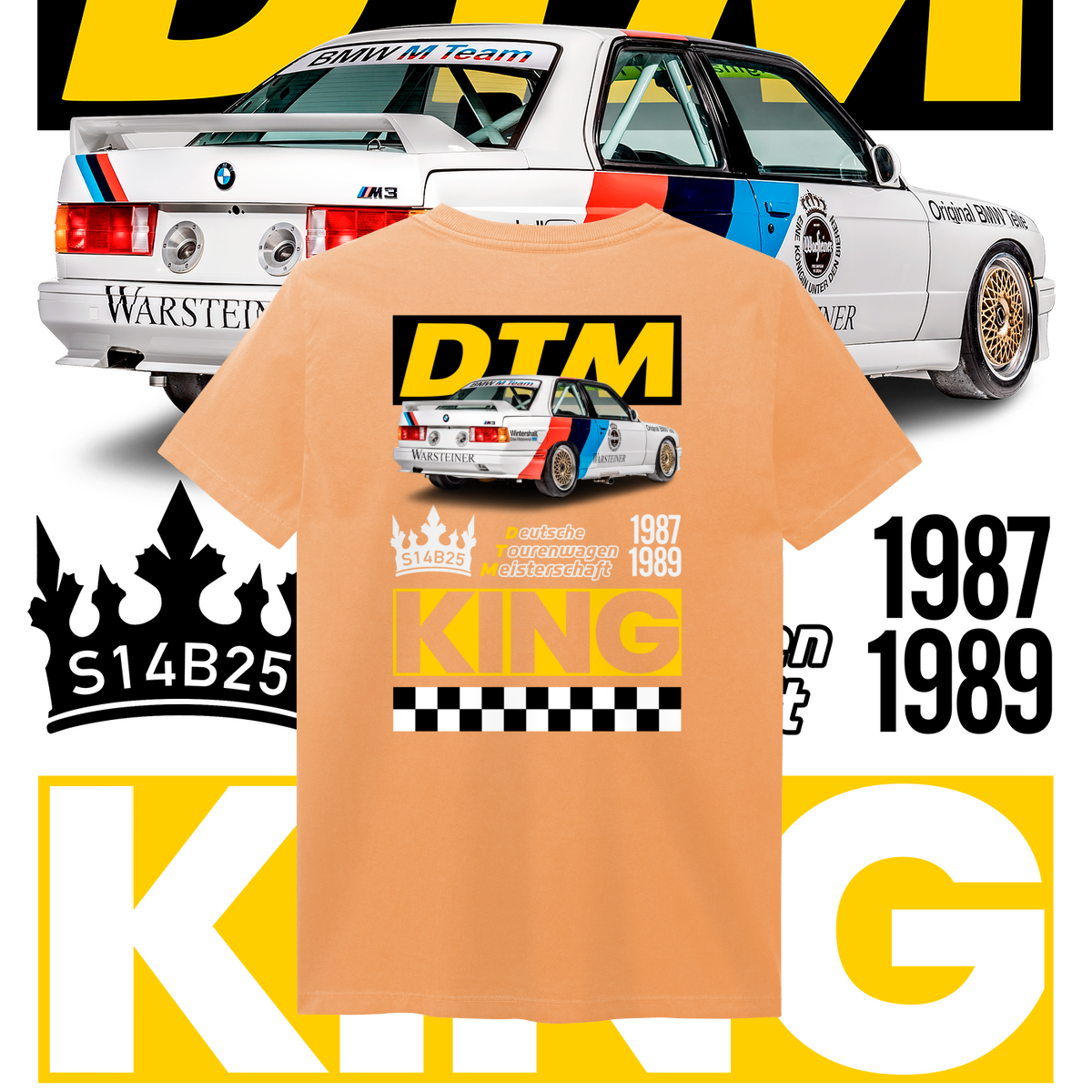 Na frente, o ícone que começou tudo. Nas costas, o salão do trono: o carro diante do seu emblema de conquista, a DTM, coroado como Rei indiscutível da sua era.