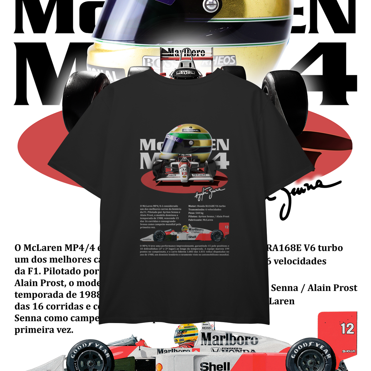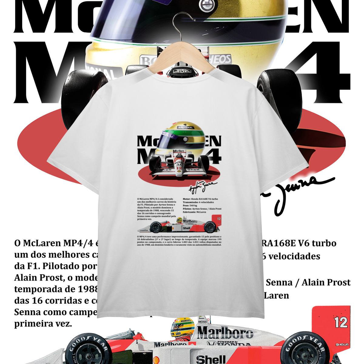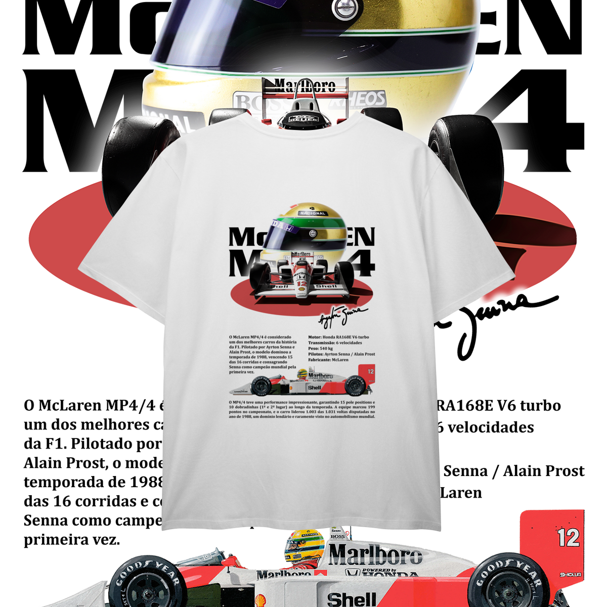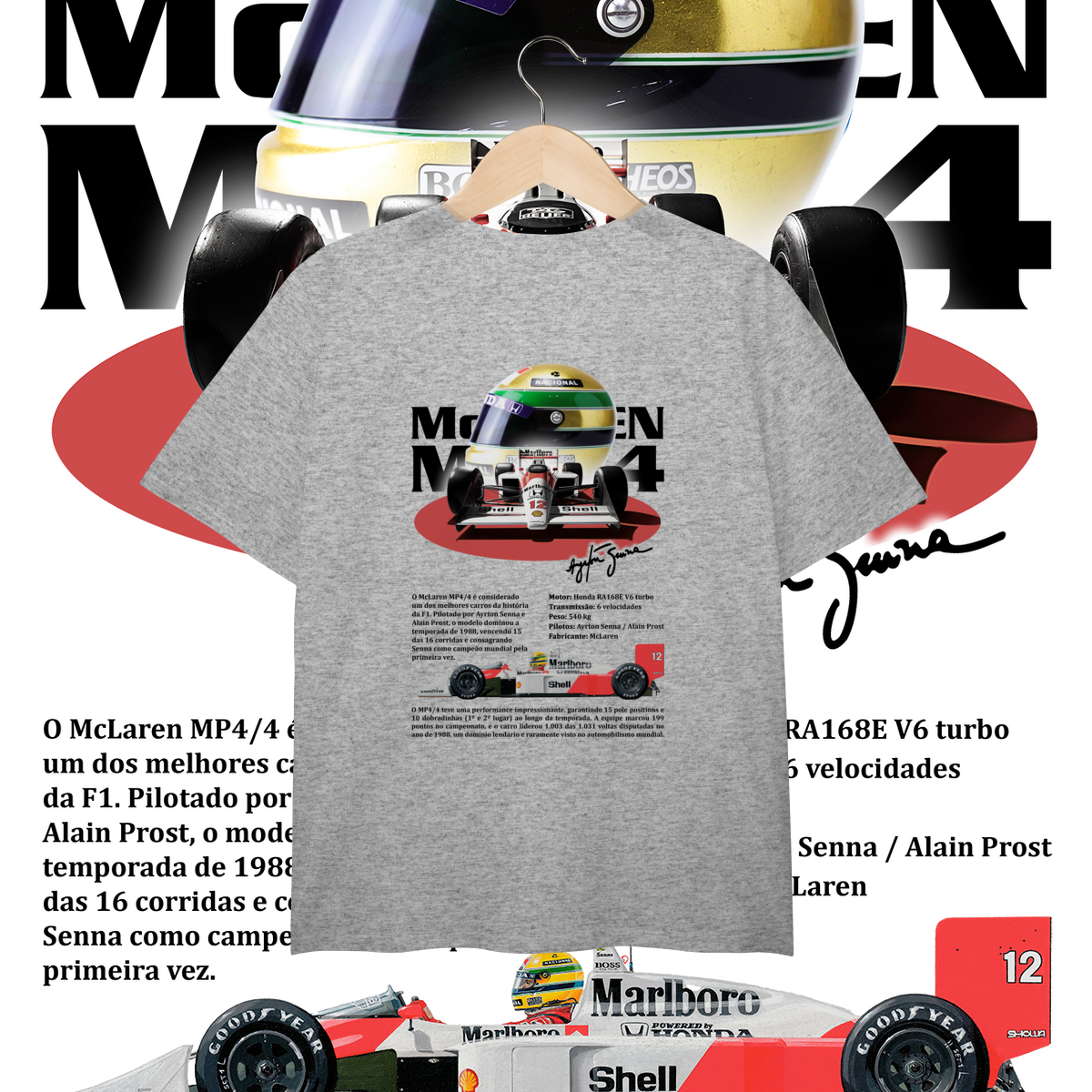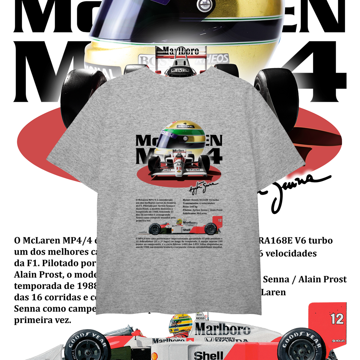 Um V6 turbo que não cantava, mas urrava, pronto para devorar o grid inteiro antes da primeira curva. O MP4/4 não foi projetado só para vencer, foi projetado para humilhar.