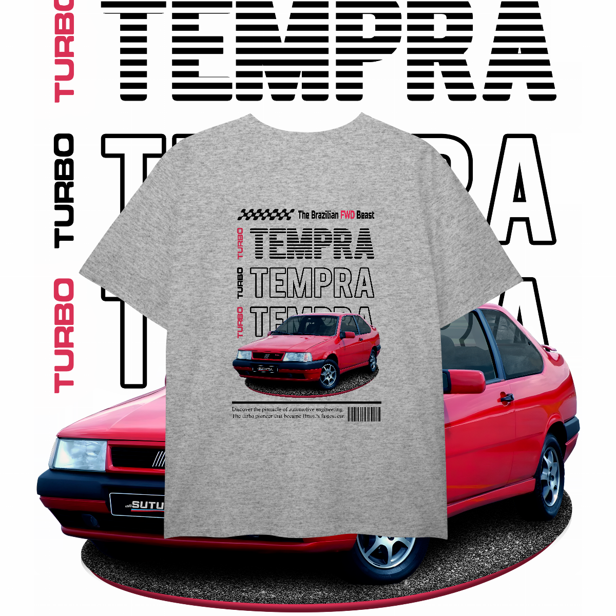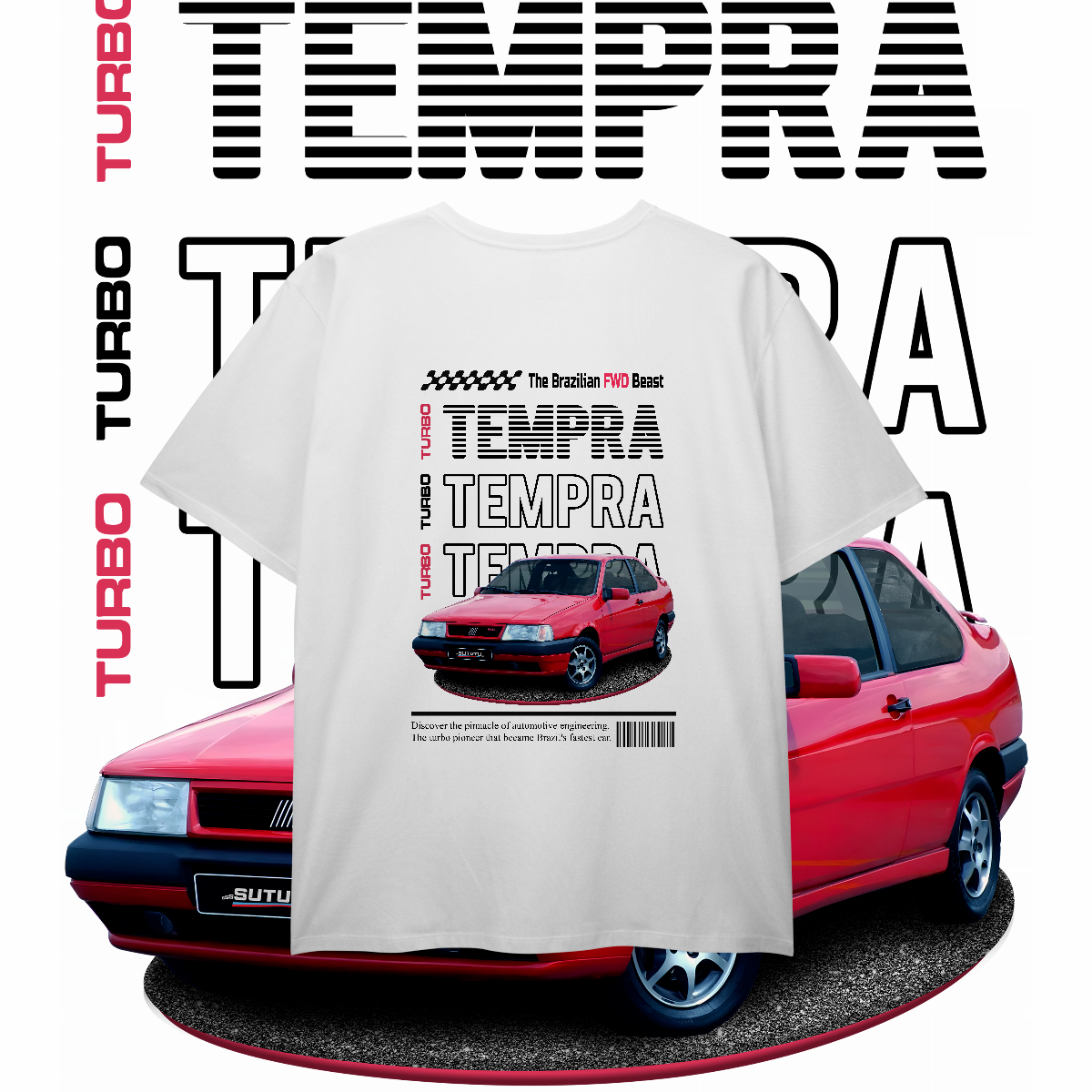 Esta não é apenas uma peça de roupa. É a materialização daquela lenda que seu tio jura que tinha, só que com os 300 cavalos a mais. É a "The Brazilian FWD Beast". É TEMPRA TURBO!