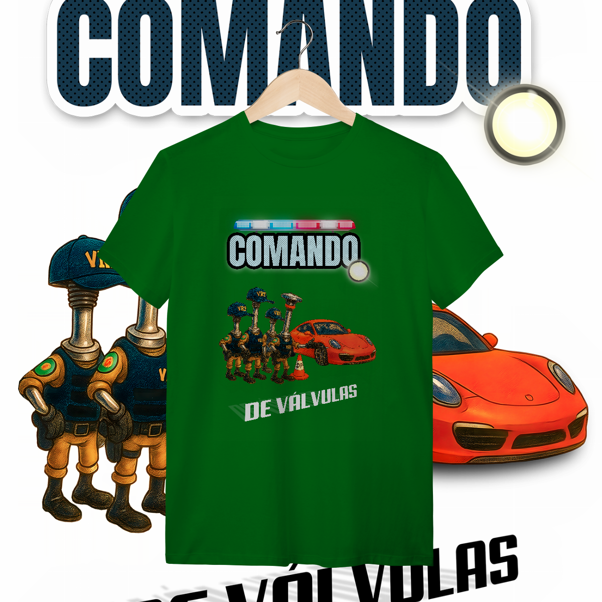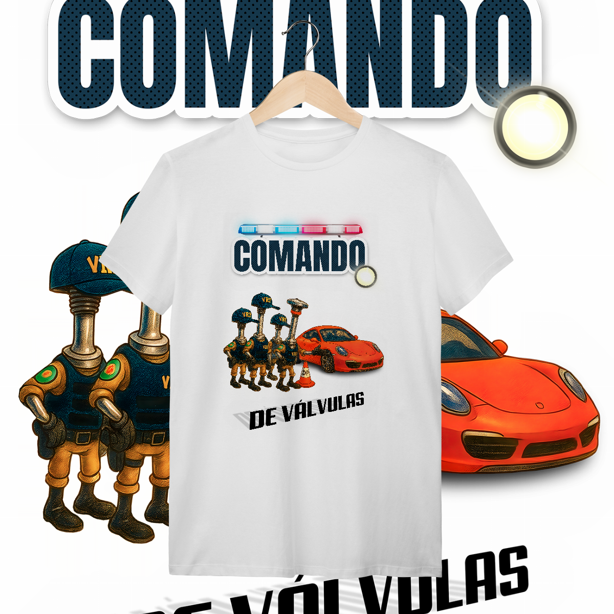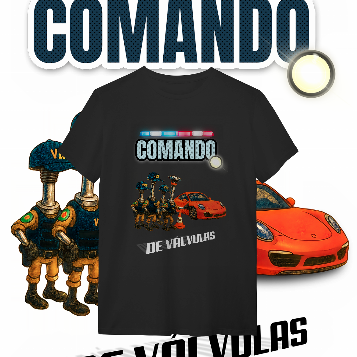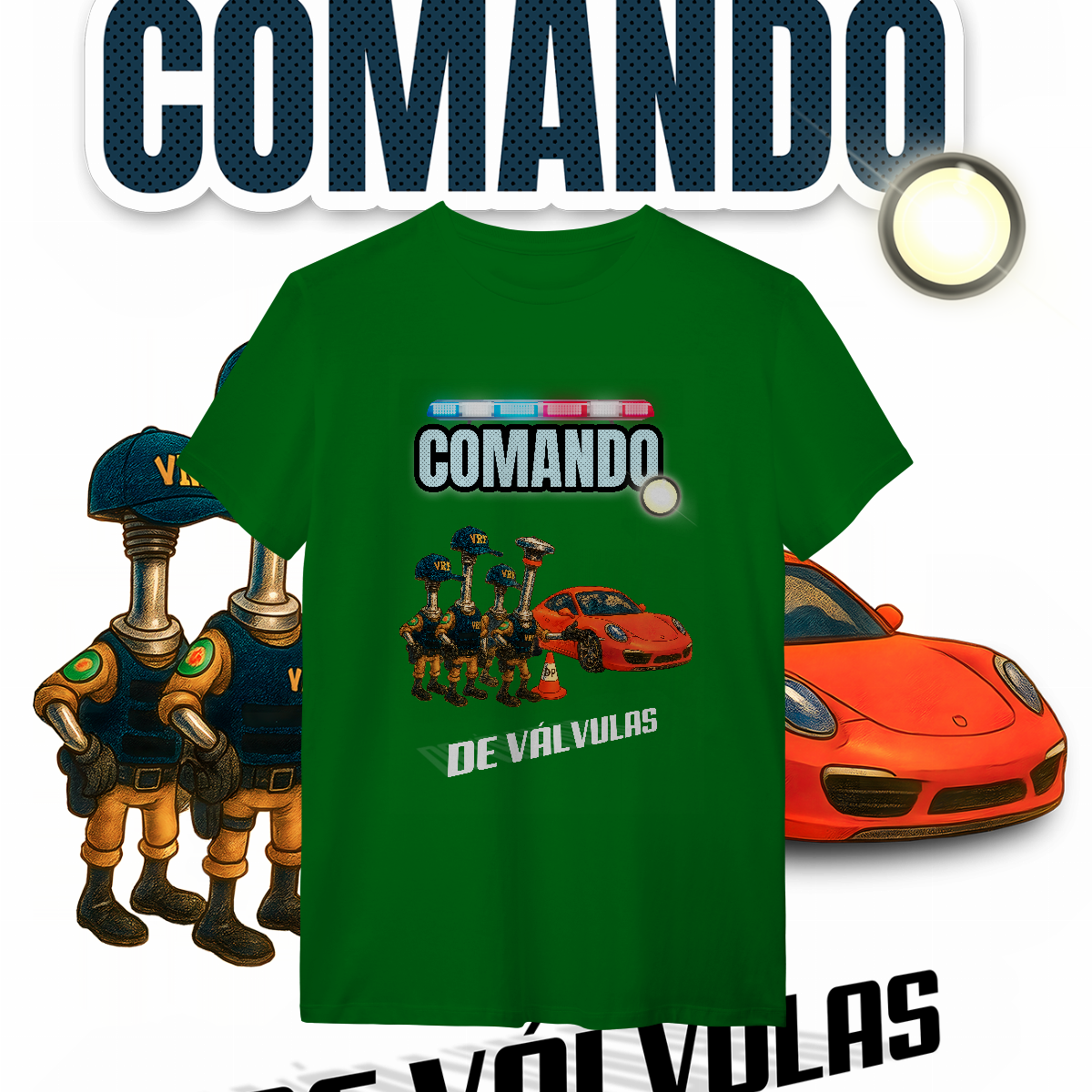 Esta estampa é a materialização desse milagre. O único "Comando" que a gente realmente respeita: o de Válvulas. Aqui, a lei é outra. A "Válvula Rodoviária Federal" não quer ver seus documentos. Ela quer ver seu acerto. E o Porsche? Passou direto, porque o comando dele está em dia.