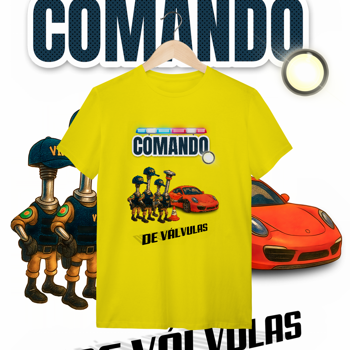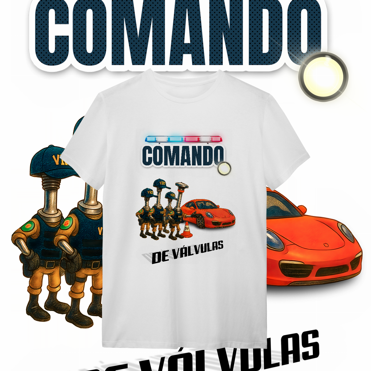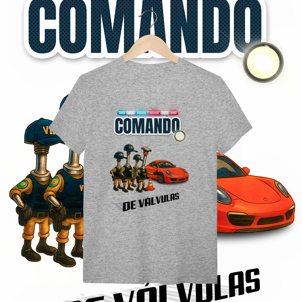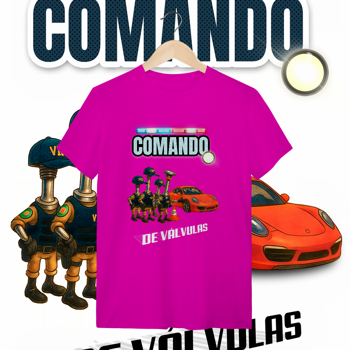 Esta estampa é a materialização desse milagre. O único "Comando" que a gente realmente respeita: o de Válvulas. Aqui, a lei é outra. A "Válvula Rodoviária Federal" não quer ver seus documentos. Ela quer ver seu acerto. E o Porsche? Passou direto, porque o comando dele está em dia.
