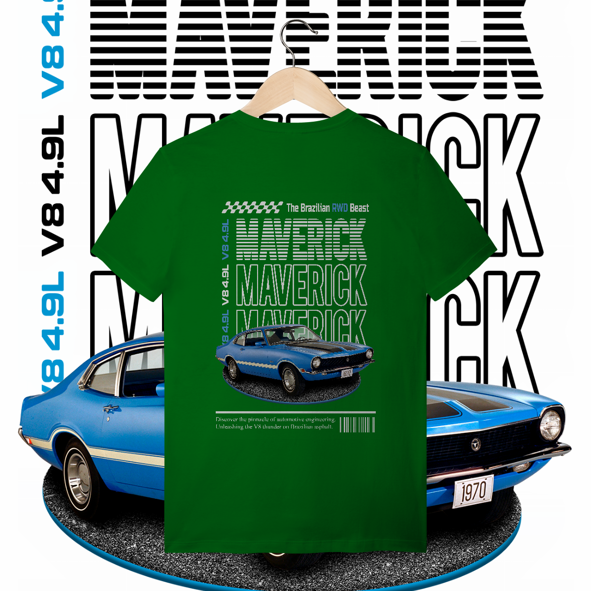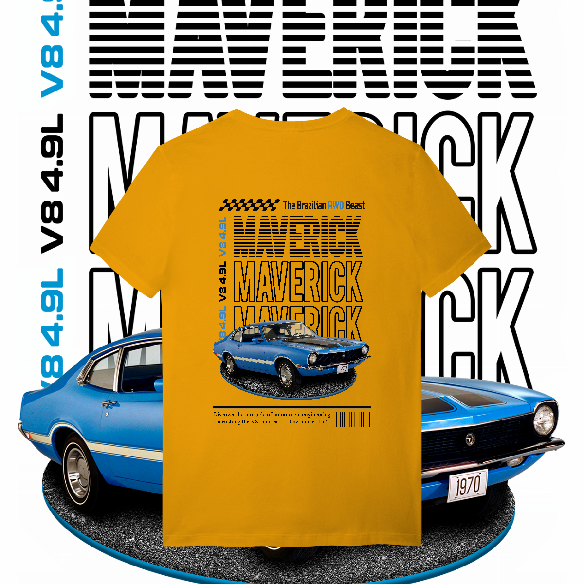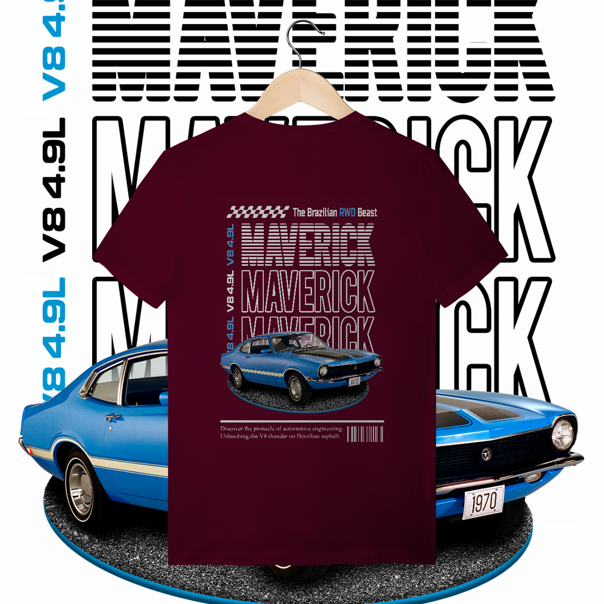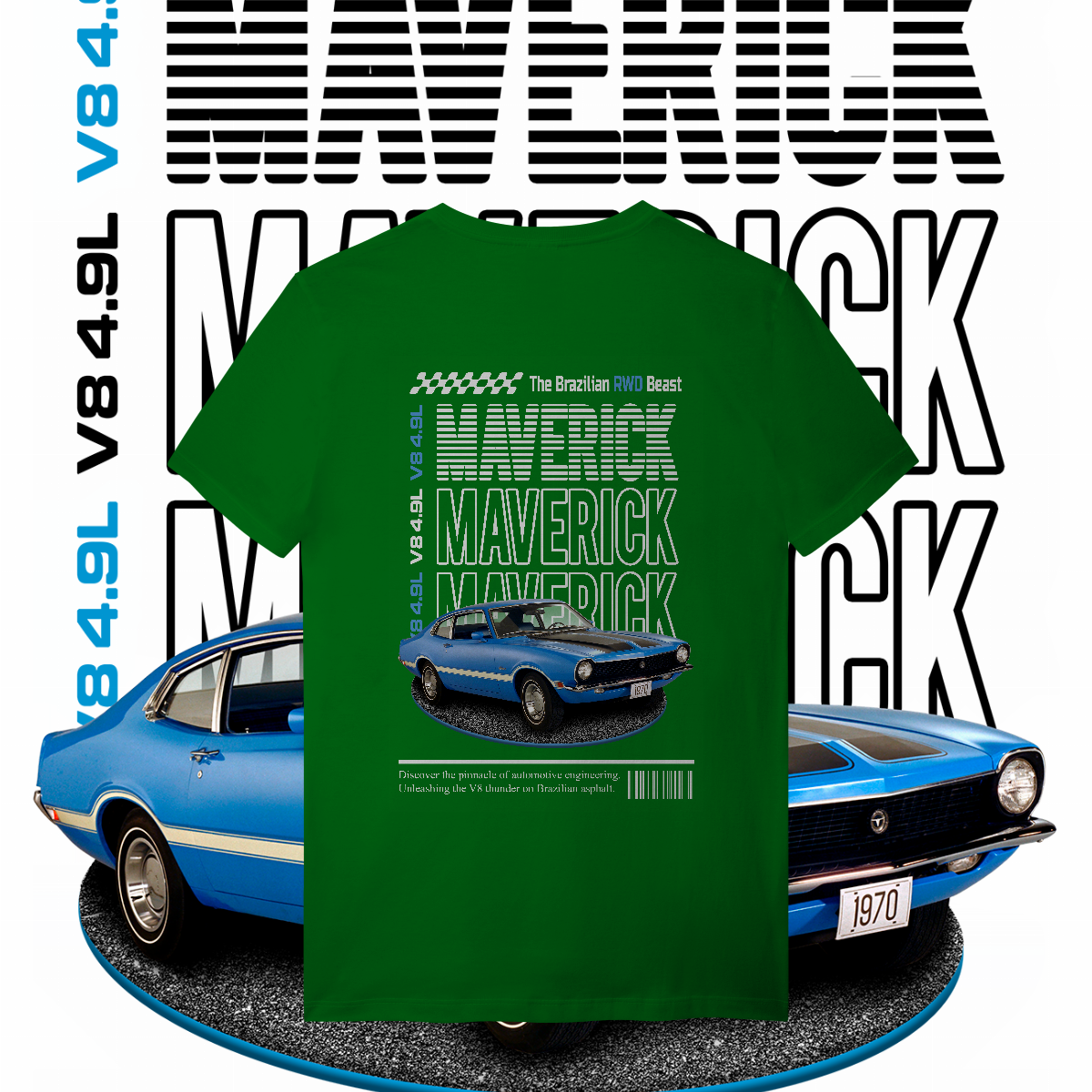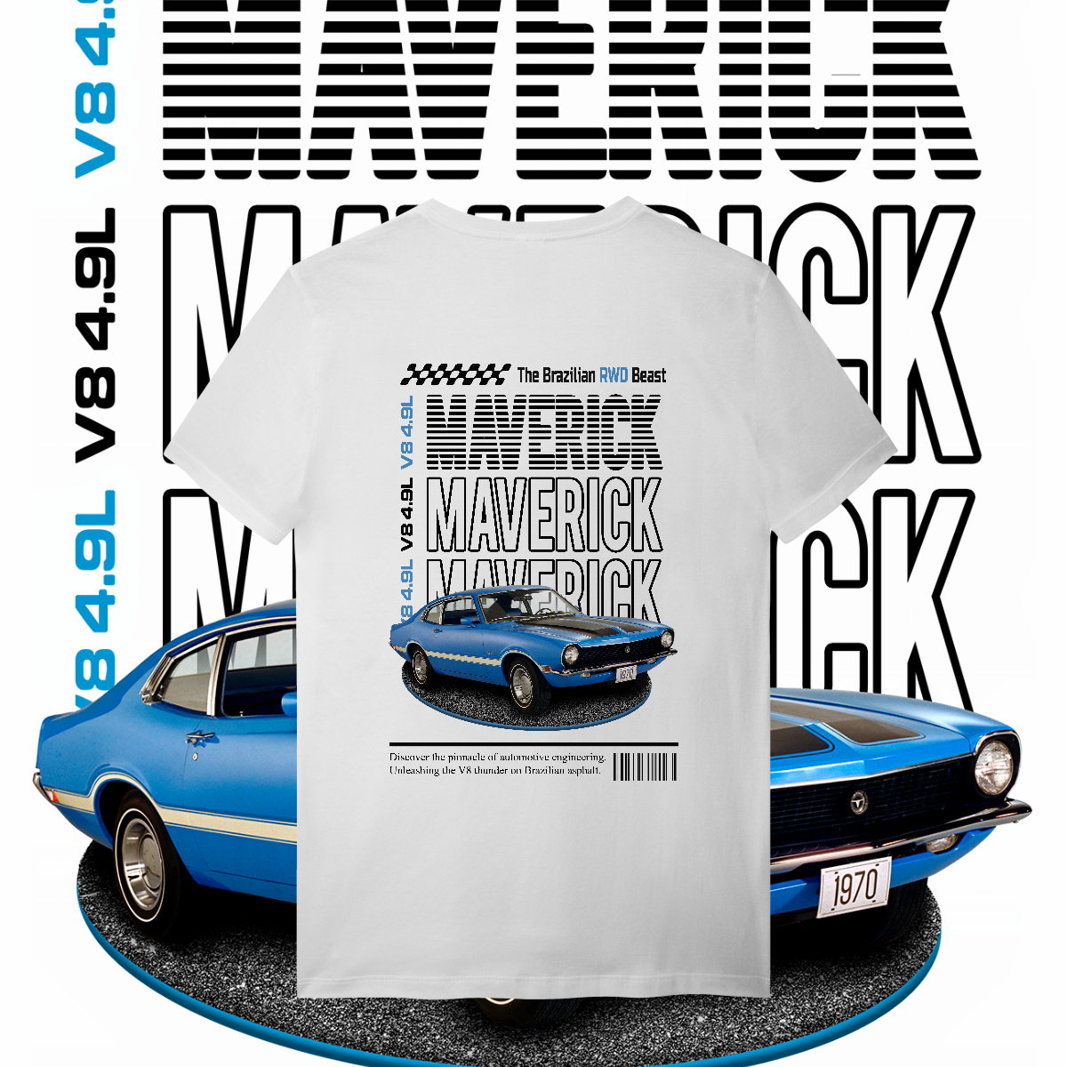 Esta não é apenas uma peça de roupa. É a materialização daquela lenda que seu tio jura que tinha, só que com os 300 cavalos a mais. É a "The Brazilian RWD Beast". É V8. É MAVERICK!
