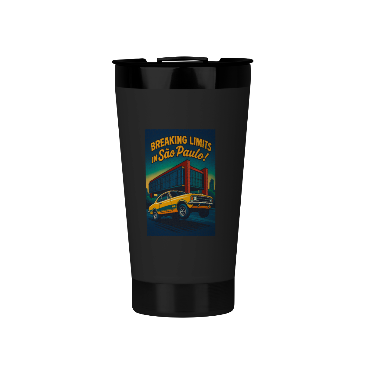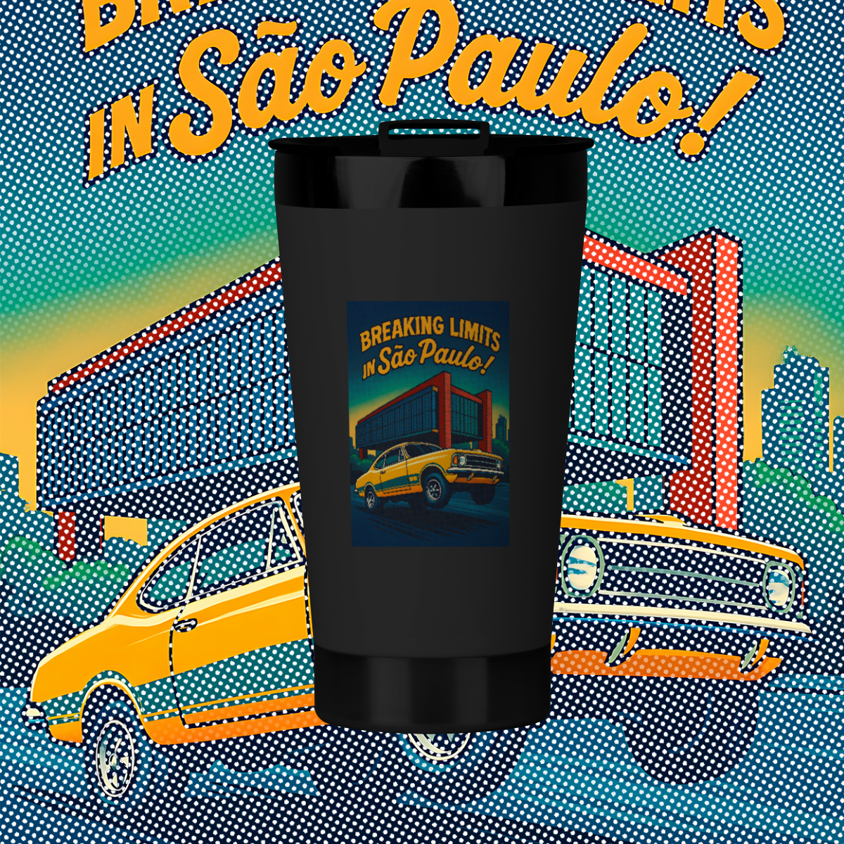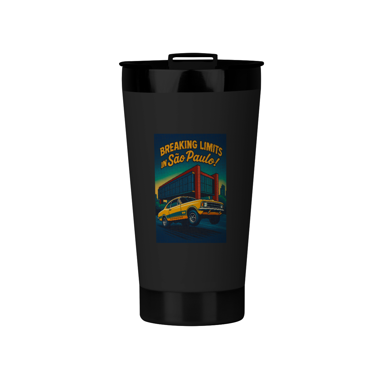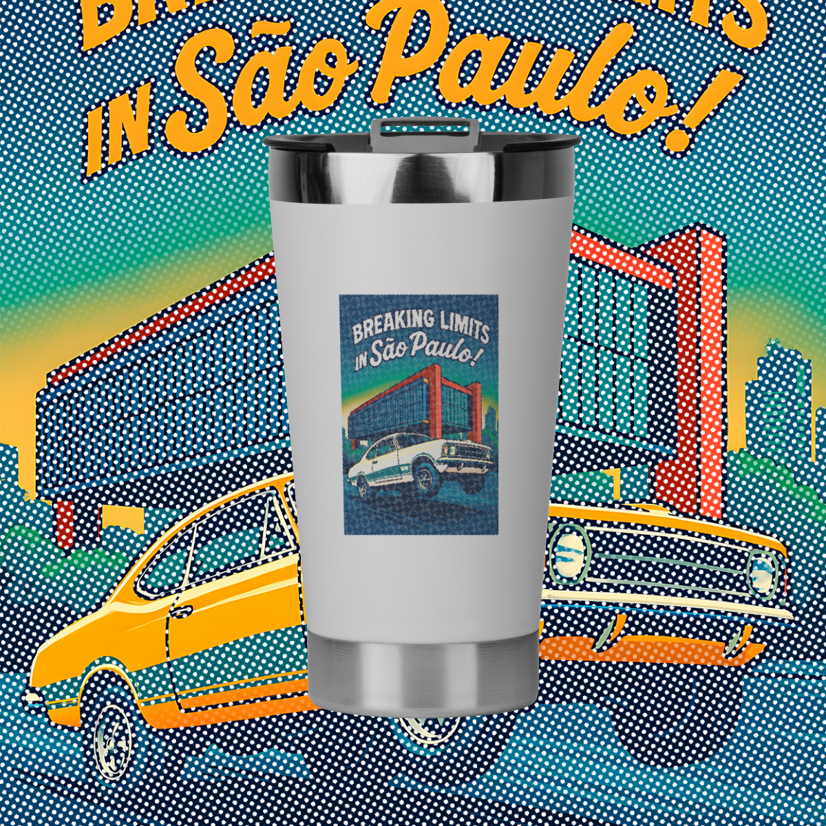 Esta garrafa não transporta apenas líquidos; ela transporta uma mensagem. A cena estampada nela é o seu lembrete diário e o aviso para todos ao redor: sua alma pode até estar presa numa planilha, mas seu coração está empinando um seis cilindros na Paulista.