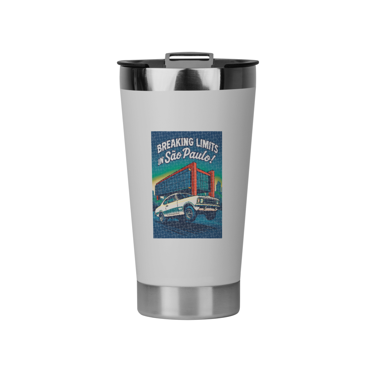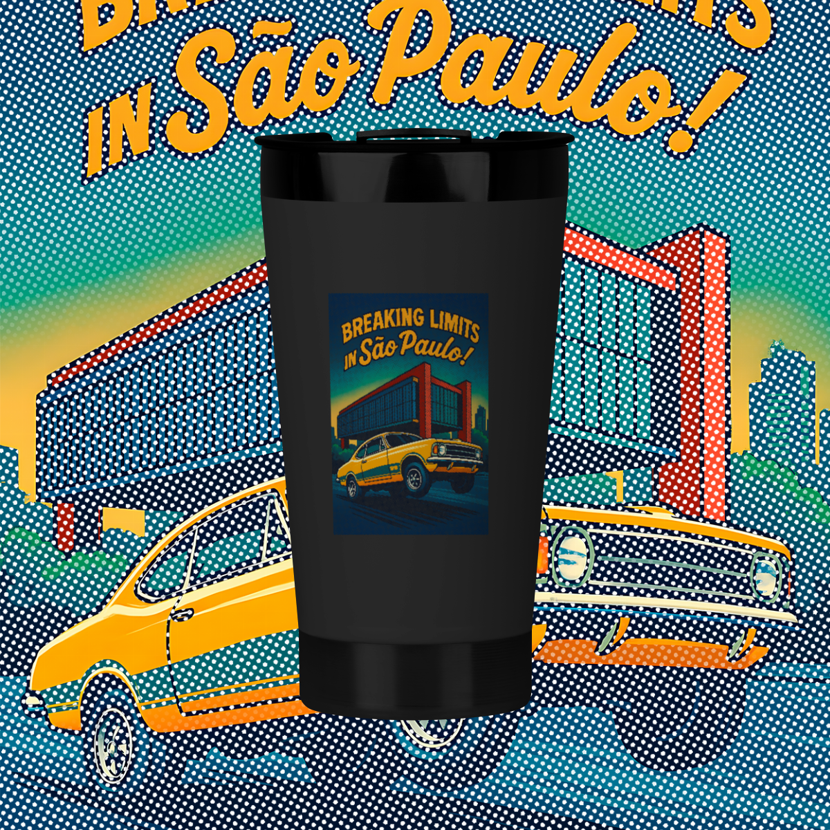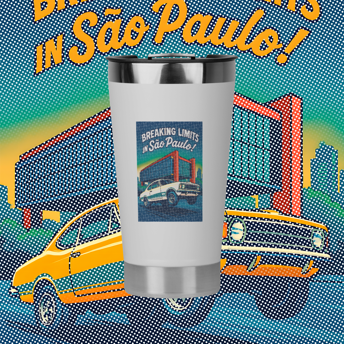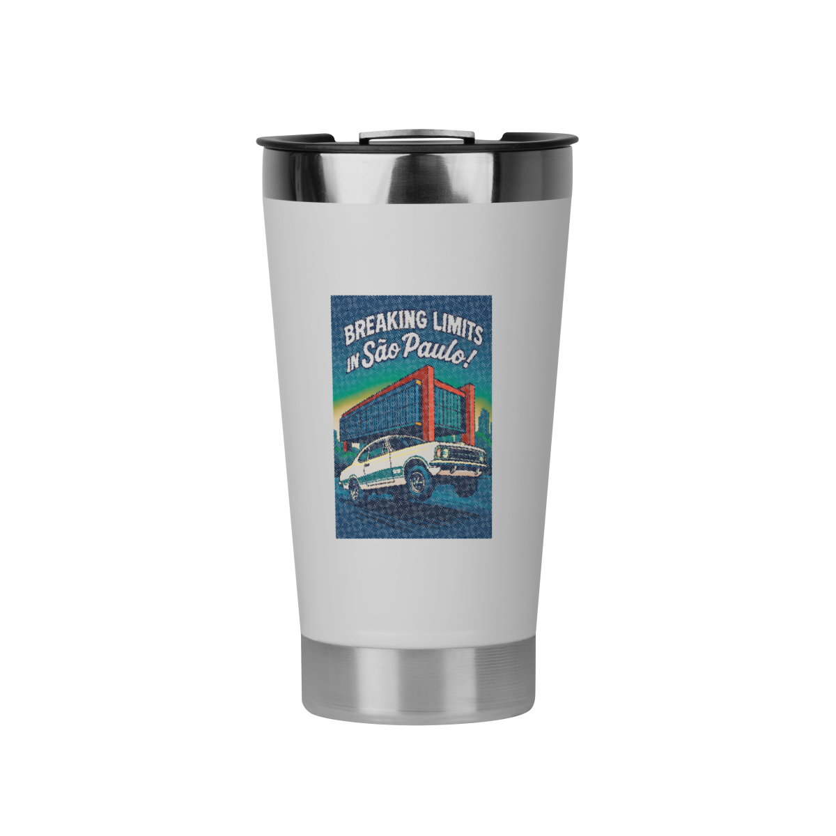 Esta garrafa não transporta apenas líquidos; ela transporta uma mensagem. A cena estampada nela é o seu lembrete diário e o aviso para todos ao redor: sua alma pode até estar presa numa planilha, mas seu coração está empinando um seis cilindros na Paulista.