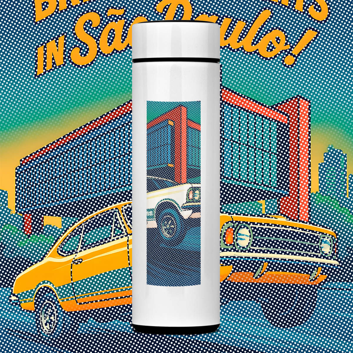 Esta garrafa não transporta apenas líquidos; ela transporta uma mensagem. A cena estampada nela é o seu lembrete diário e o aviso para todos ao redor: sua alma pode até estar presa numa planilha, mas seu coração está empinando um seis cilindros na Paulista.