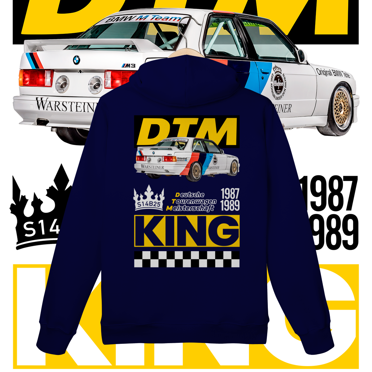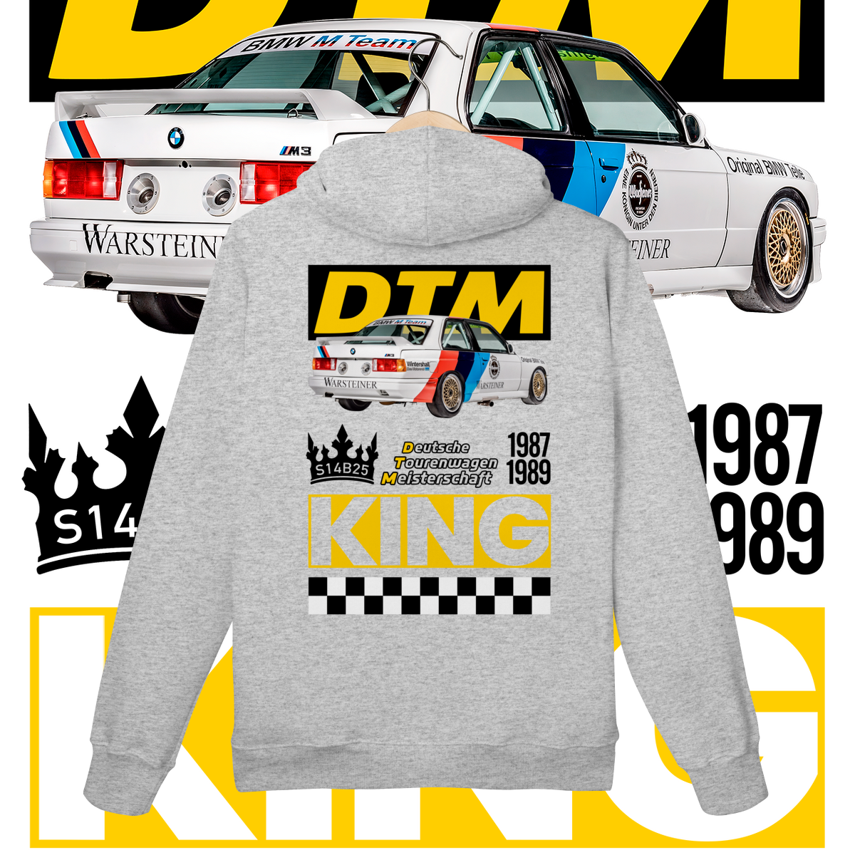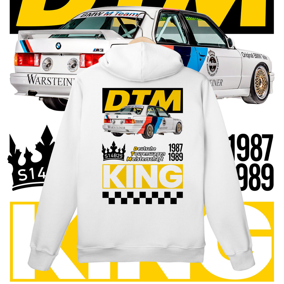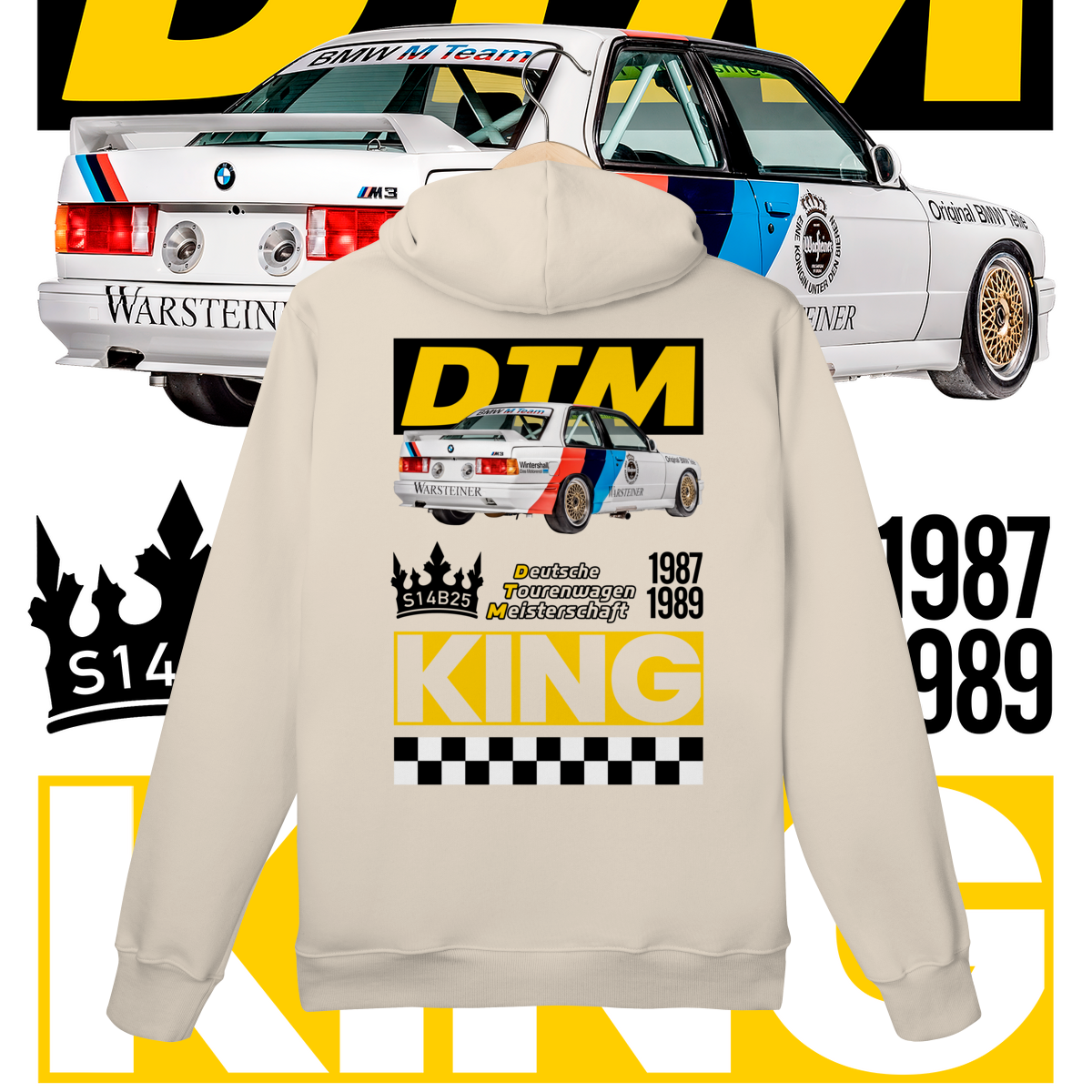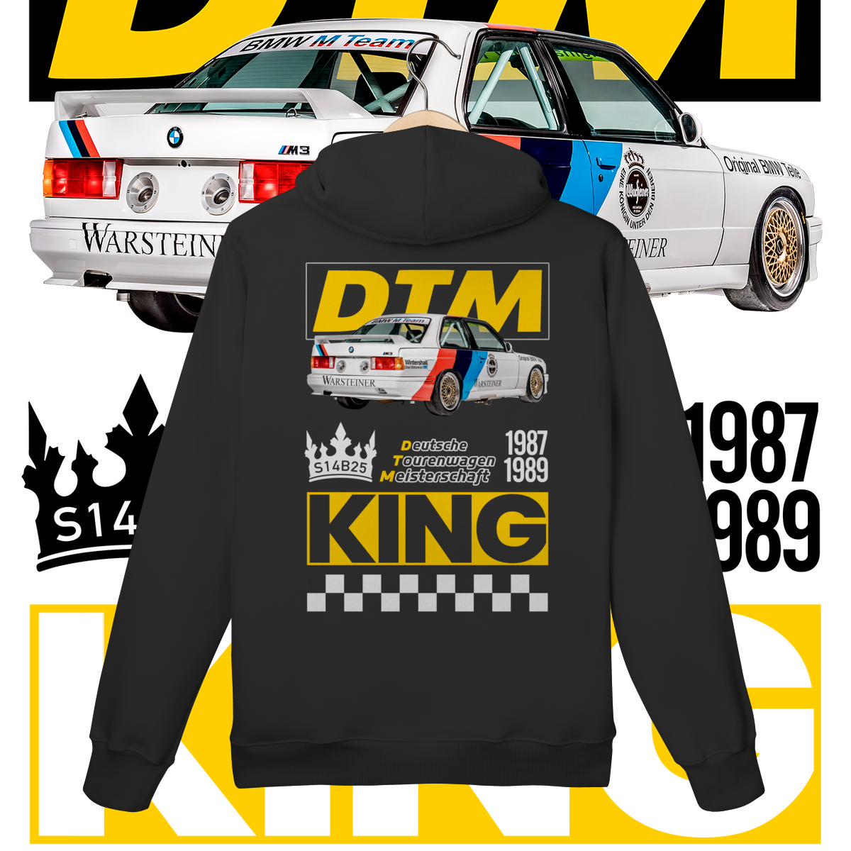 Na frente, o ícone que começou tudo. Nas costas, o salão do trono: o carro diante do seu emblema de conquista, a DTM, coroado como Rei indiscutível da sua era.
