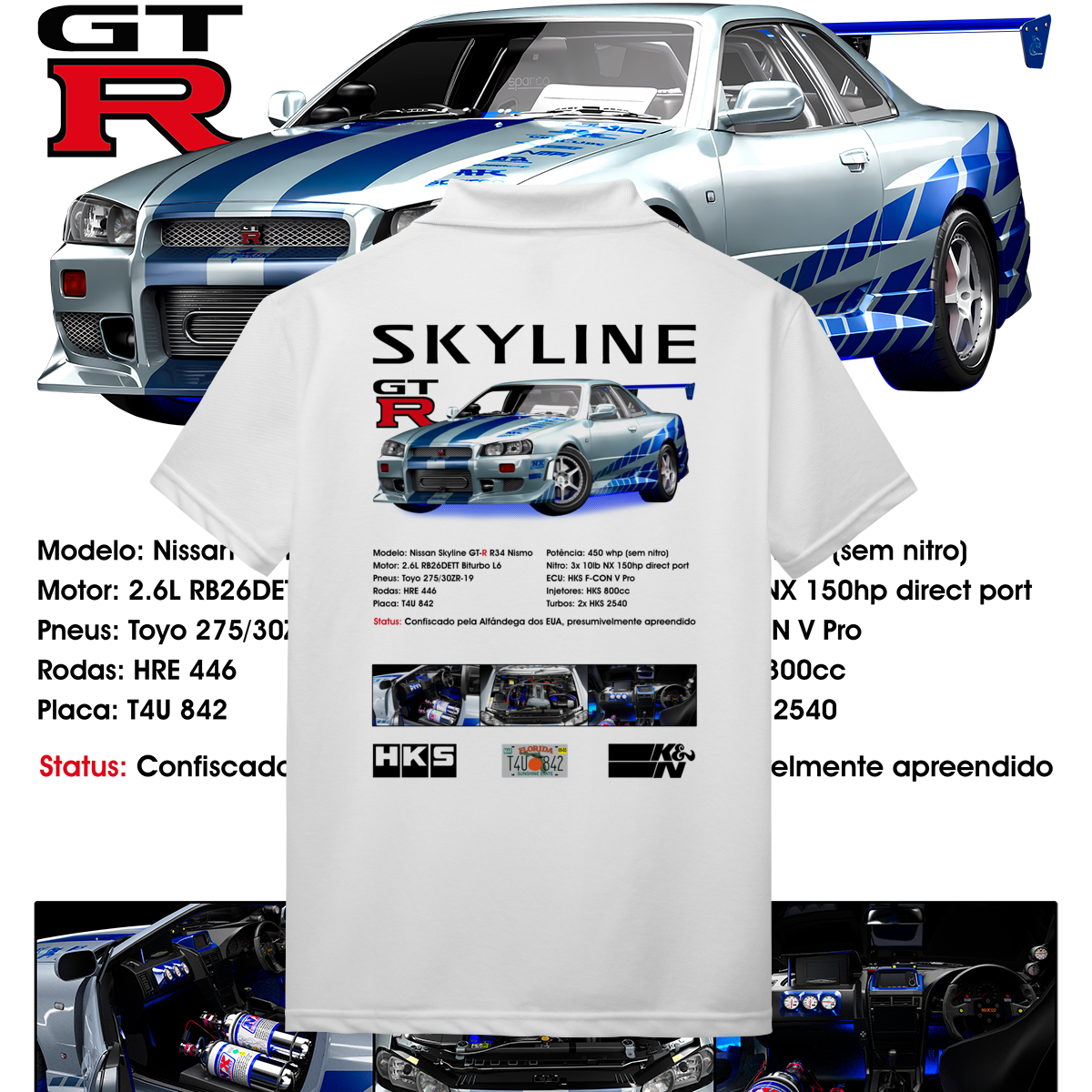 Na frente, o símbolo de afiliação da Auto Escola Brian O Conner, o "eu sou da turma" instantâneo que todos reconheciam. Nas costas, a sua garagem dos sonhos em formato de algodão: o carro, as especificações, os patrocinadores. É tudo seu. Sem o IPVA, o seguro exorbitante ou o medo constante de acordar e não encontrá-lo mais na garagem.