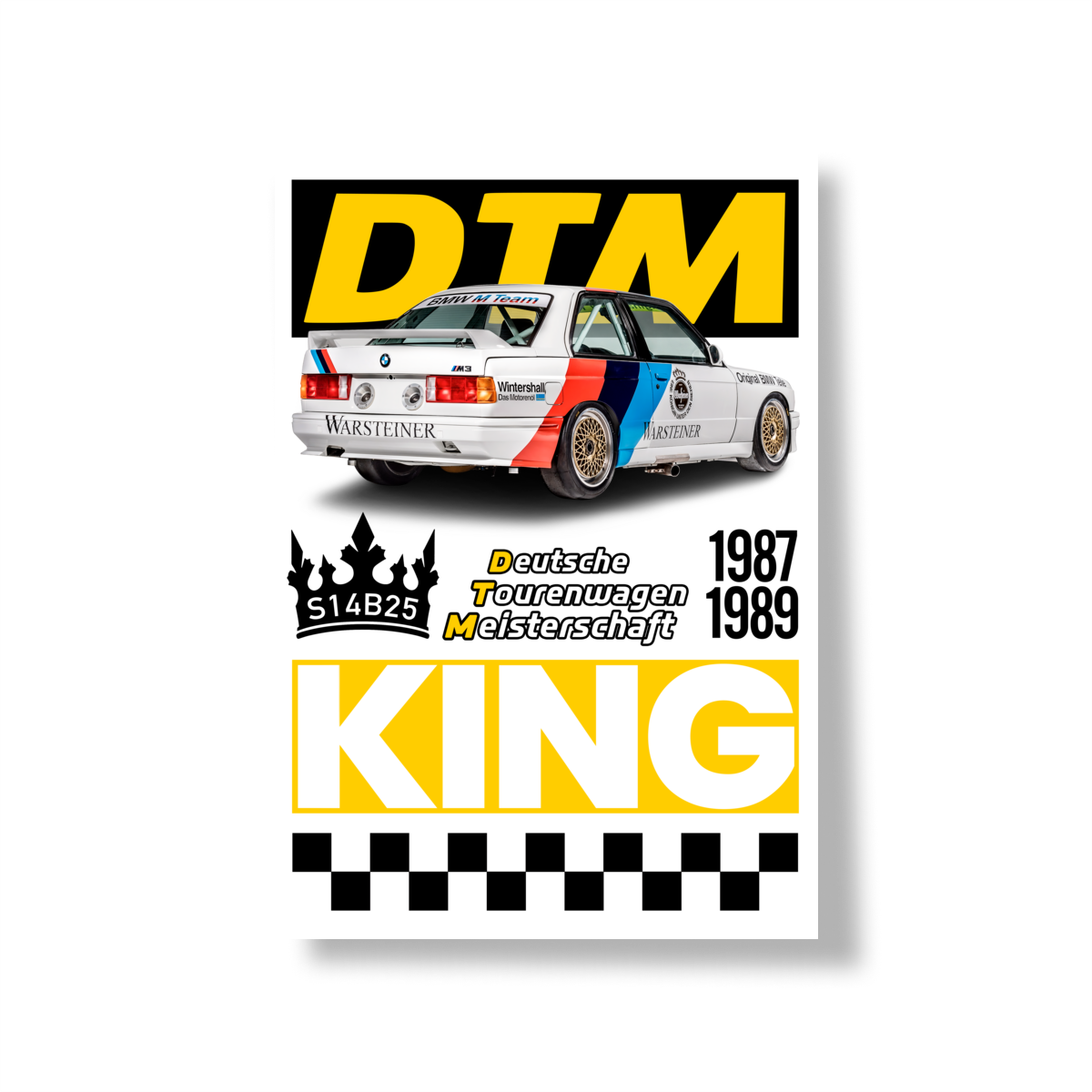 Na frente, o ícone que começou tudo. Nas costas, o salão do trono: o carro diante do seu emblema de conquista, a DTM, coroado como Rei indiscutível da sua era.