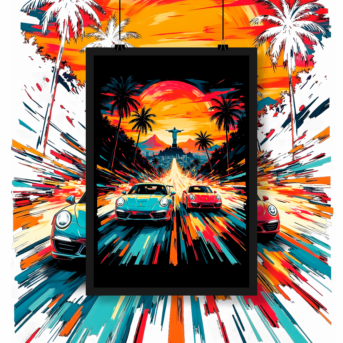 Mas sabe o que o deixaria perfeito? A materialização daquela decisão gloriosamente irresponsável que você tomaria se tivesse a conta bancária de um oligarca e zero preocupação com o código de trânsito! Dois Porsches, porque um é para amadores. Um pôr do sol dourado, porque até a anarquia precisa de uma boa iluminação.