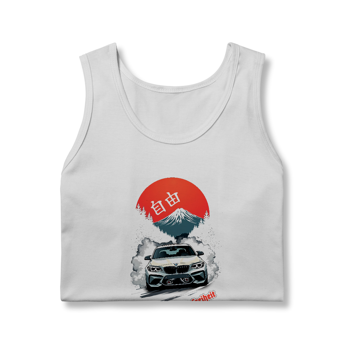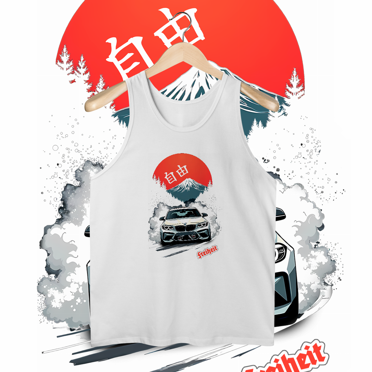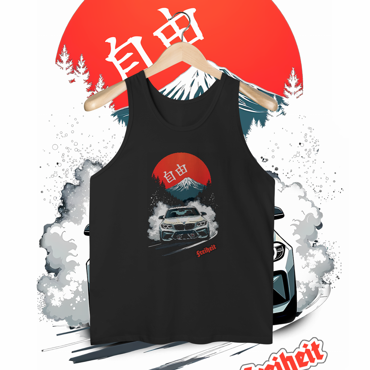 O resultado é uma oração em duas línguas. Na base, a força alemã gritando "Freiheit": A liberdade que nasce da engenharia, da potência que quebra a tração. No topo, a alma japonesa sussurrando "自由" (Jiyū): A liberdade que se encontra no ângulo perfeito, na fumaça, na arte.