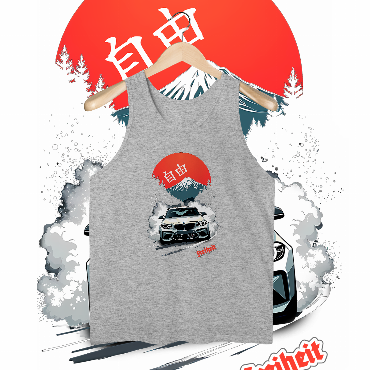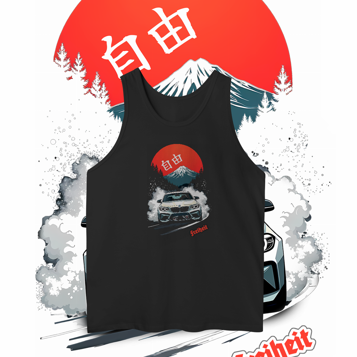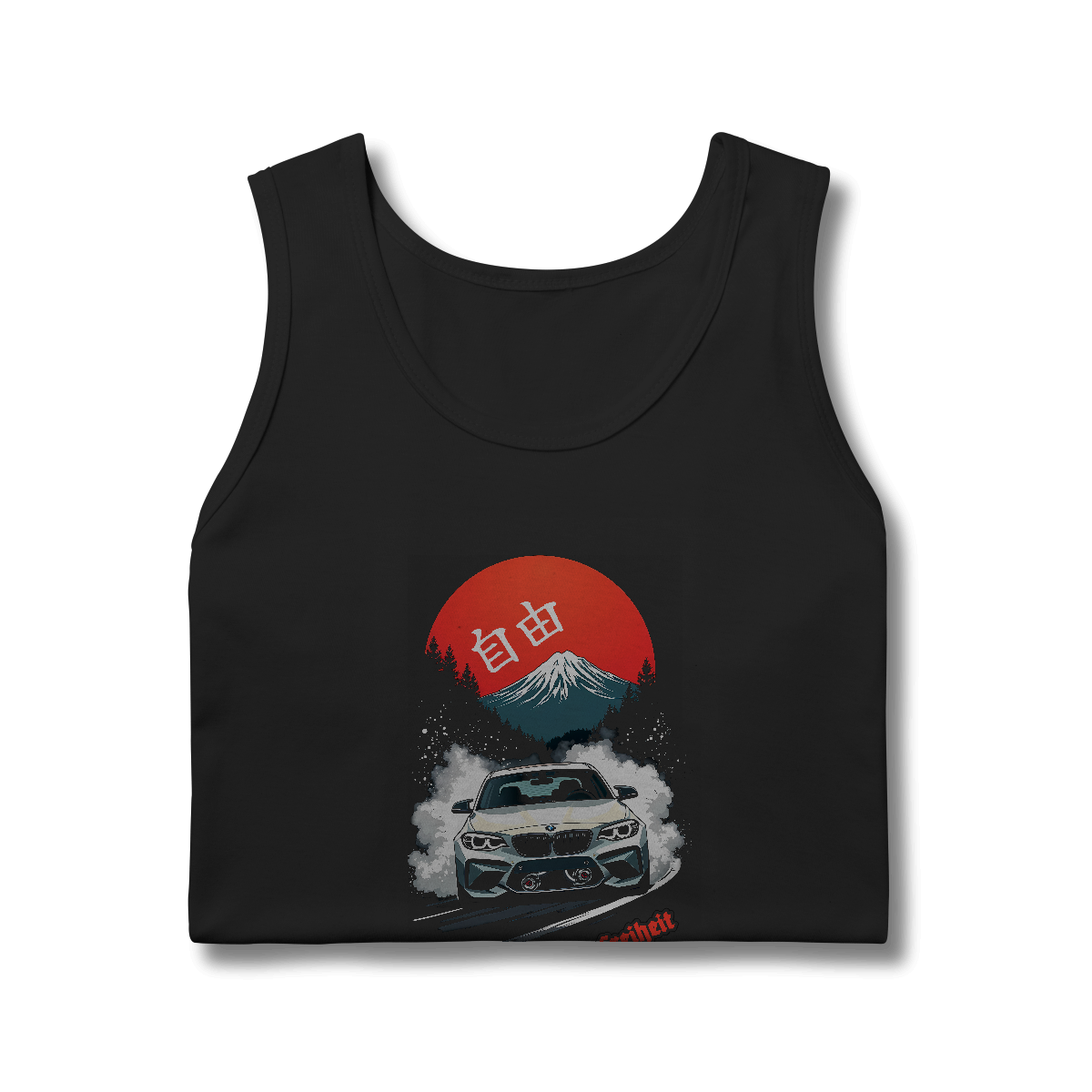 O resultado é uma oração em duas línguas. Na base, a força alemã gritando "Freiheit": A liberdade que nasce da engenharia, da potência que quebra a tração. No topo, a alma japonesa sussurrando "自由" (Jiyū): A liberdade que se encontra no ângulo perfeito, na fumaça, na arte.